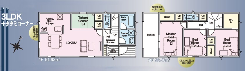 間取り:2階建て3LDK+畳コーナー