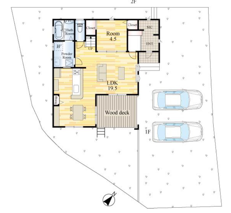 #駐車スペース4台、LIVから繋がるウッドデッキ!